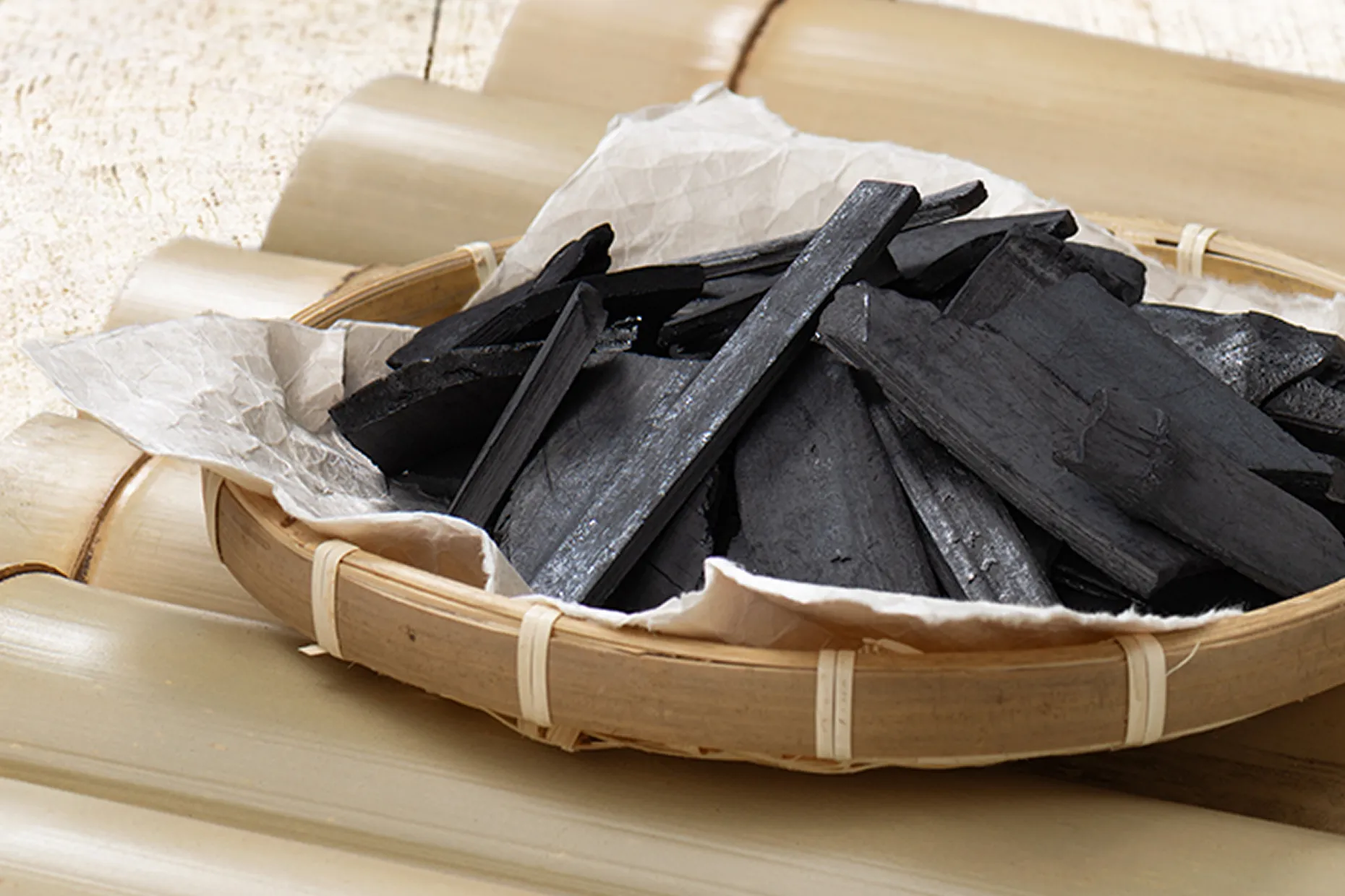 器に適量の竹炭を入れて置くだけで、調湿・消臭効果により空気をすこやかに整えます。竹炭の凛とした佇まいが、さりげないインテリアとしても空間に馴染みます。